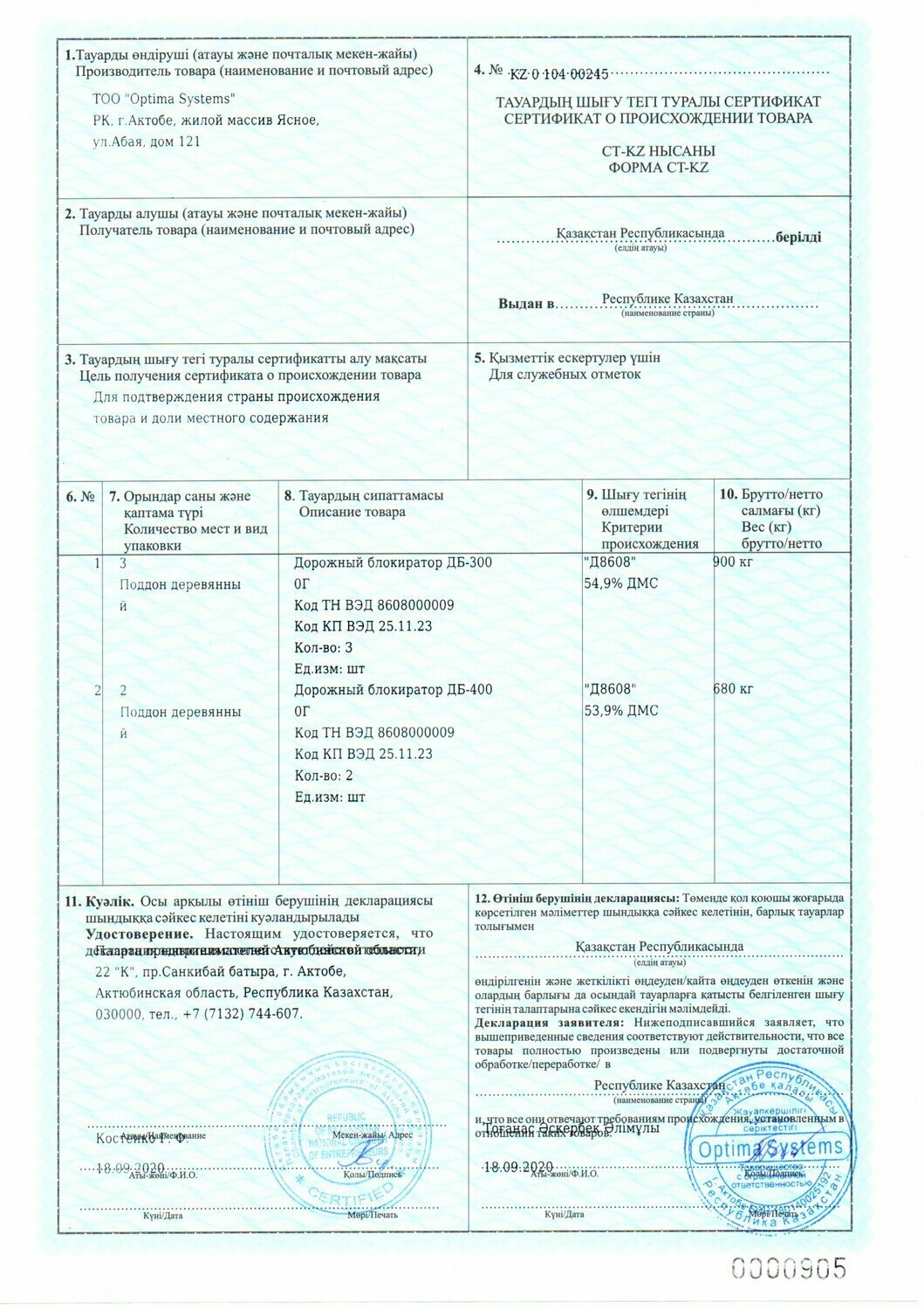 СЕРТИФИКАТЫ СТ-КЗ